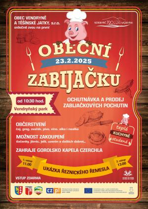Přijďte ochutnat zabijačkové speciality ve Vendryňském parku, včetně ukázky řeznického řemesla. Akce začíná v 10:30 a nabídne bohaté občerstvení a možnost zakoupení výrobků.